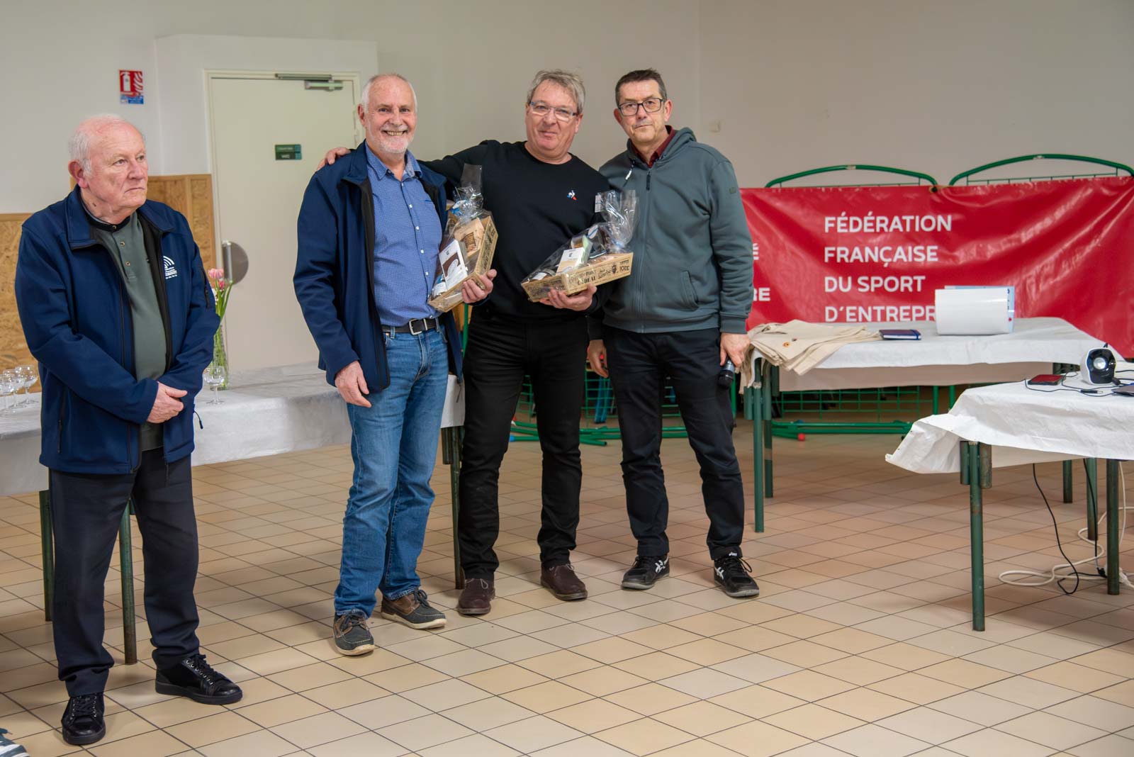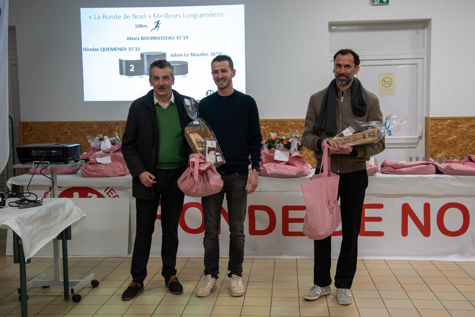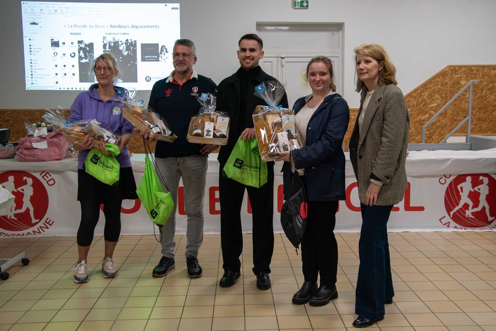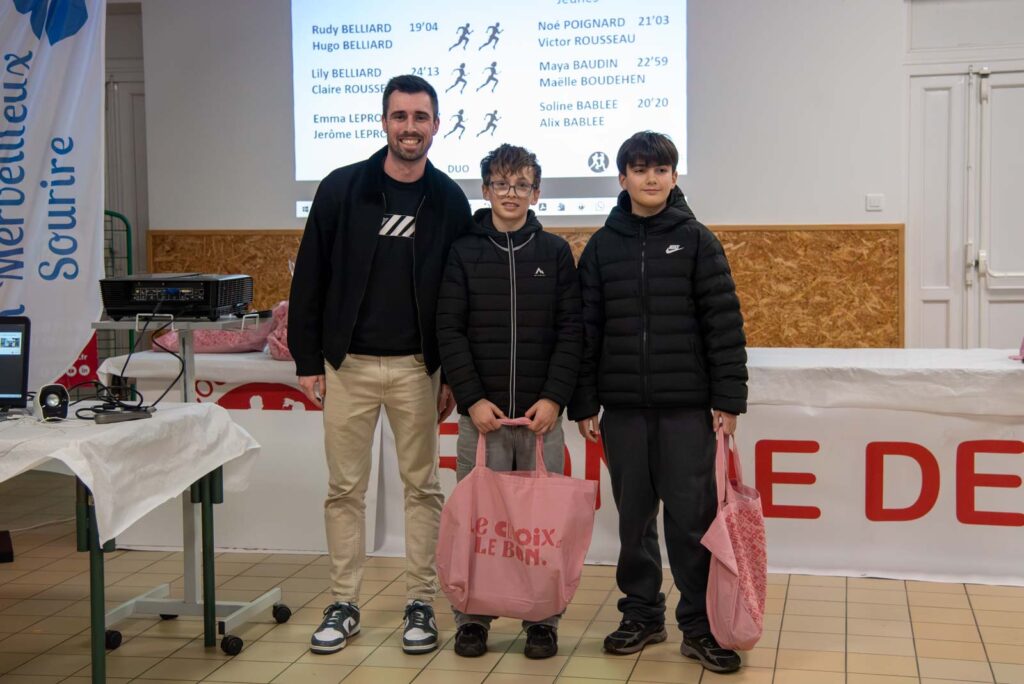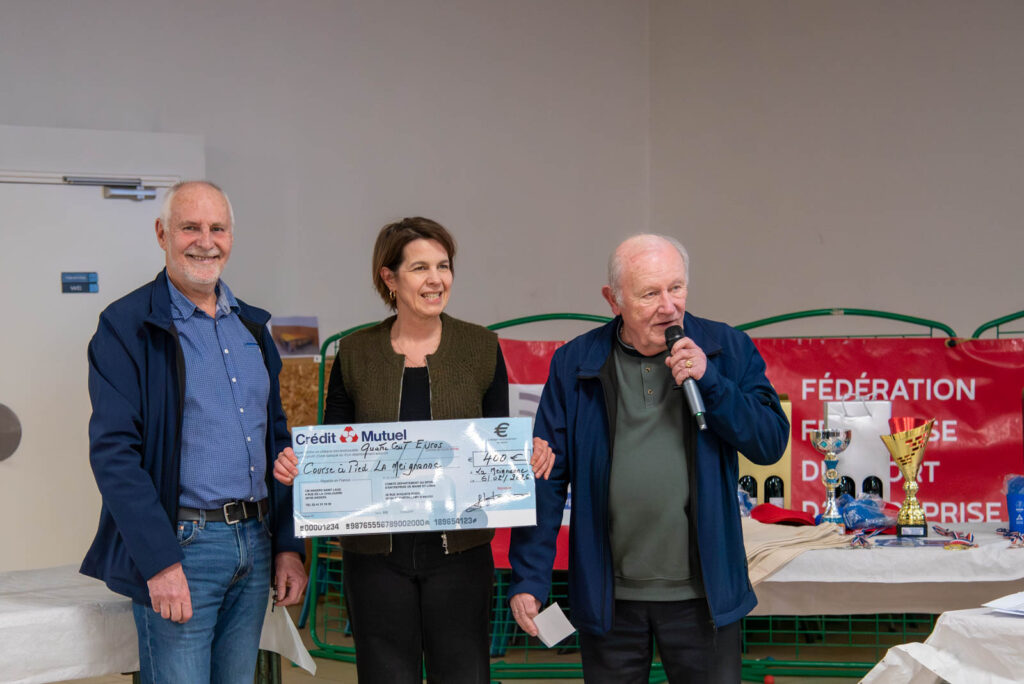 Soirée partenaires Ronde 2025Présence des partenaires de la ronde avec remise de lots aux meilleurs coureurs longuenéens 10 km masculin 1er duo féminin et et 1er duo masculin 1er duo jeune masculin 1er duo jeune féminin Meilleurs déguisements Challenge FFSE - 1er Gazelec Angers Challenge FFSE - 2ème Ecole du Génie Challenge FFSE - 3ème Parker Megitt Remerciement au motard ouvreur de la course Remise du chèque de la FFSE à la Vice-Présicdente de l'association CAP La Meignanne Remise du chèque à l'association "Un Merveilleux Sourire"